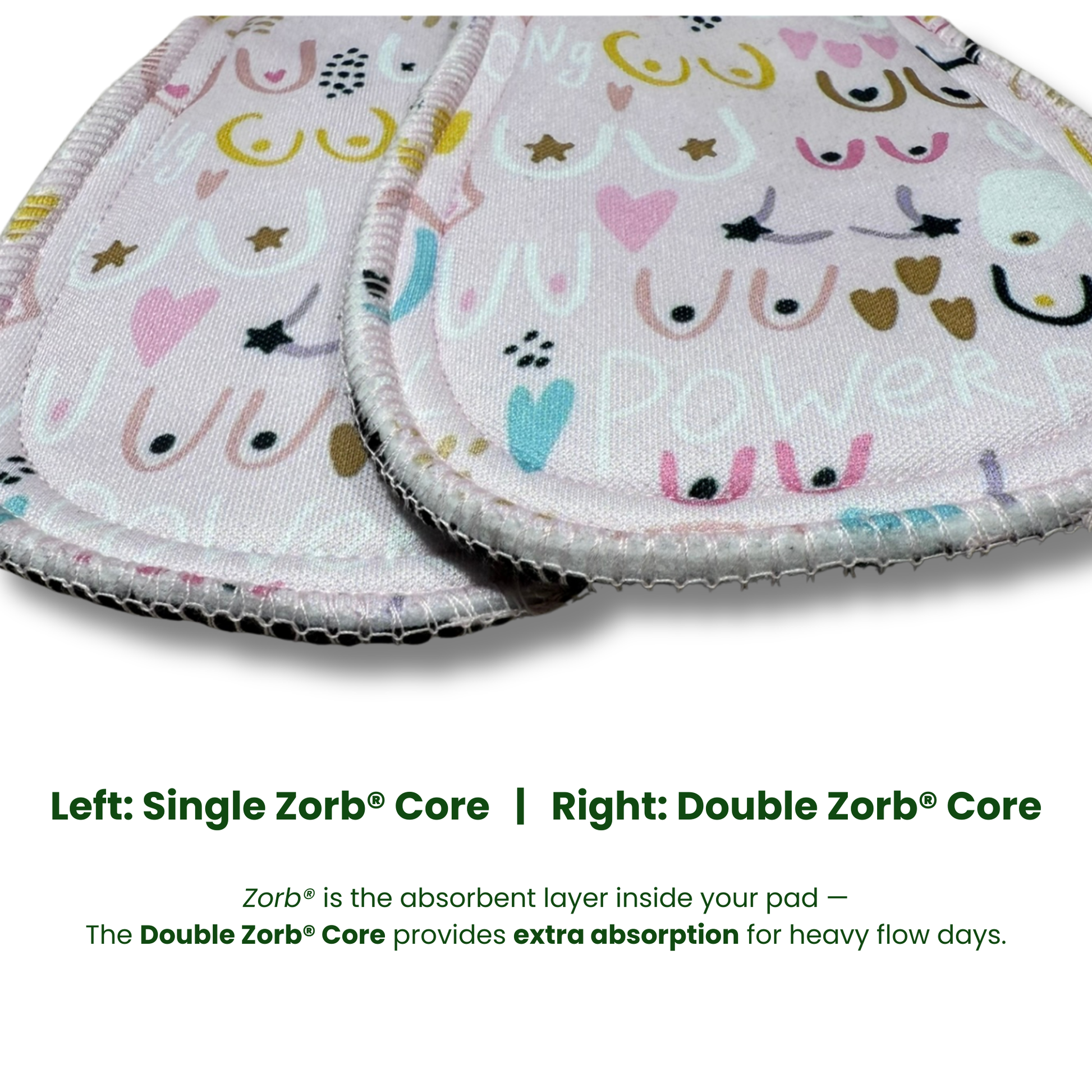 Adorable print, comfy, absorbent, easy to clean! Perfect cloth pad